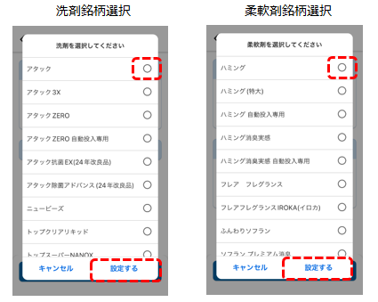 Q[アプリ]洗剤・柔軟剤の設定をしたい