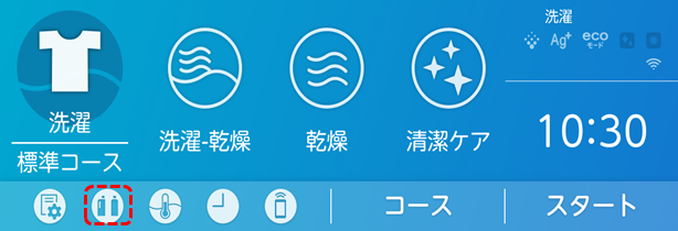 ※初めて使うときや、液体洗剤・柔軟剤の種類を変えるときは容器に記載の「水30Lに対する使用量」を確認し、基準量を設定してください。