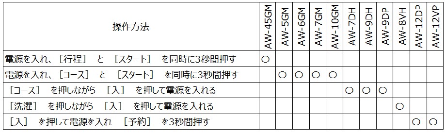 操作ボタンがタッチセンサ式のモデル(AW-12DP□/AW-10DP□/AW-12VP□/AW-10VP□)