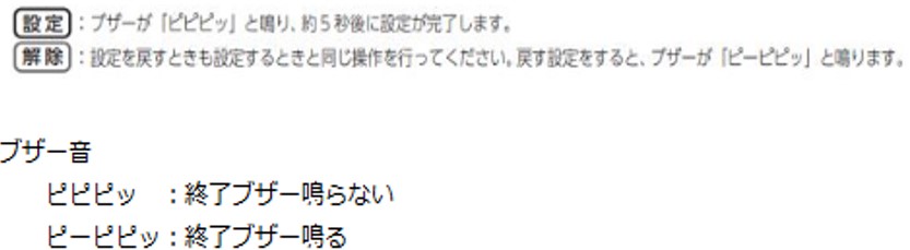 終了ブザー音の解除と設定のしかた