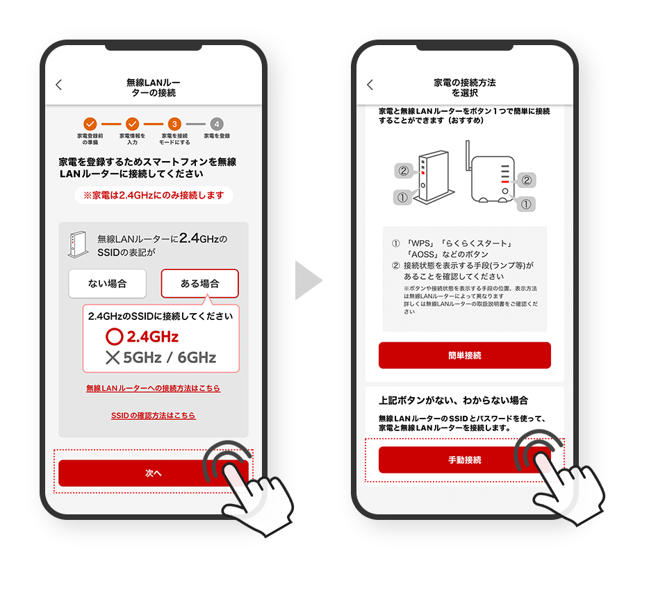 手動接続 STEP1:家電を無線LANルーターに接続できませんでした または