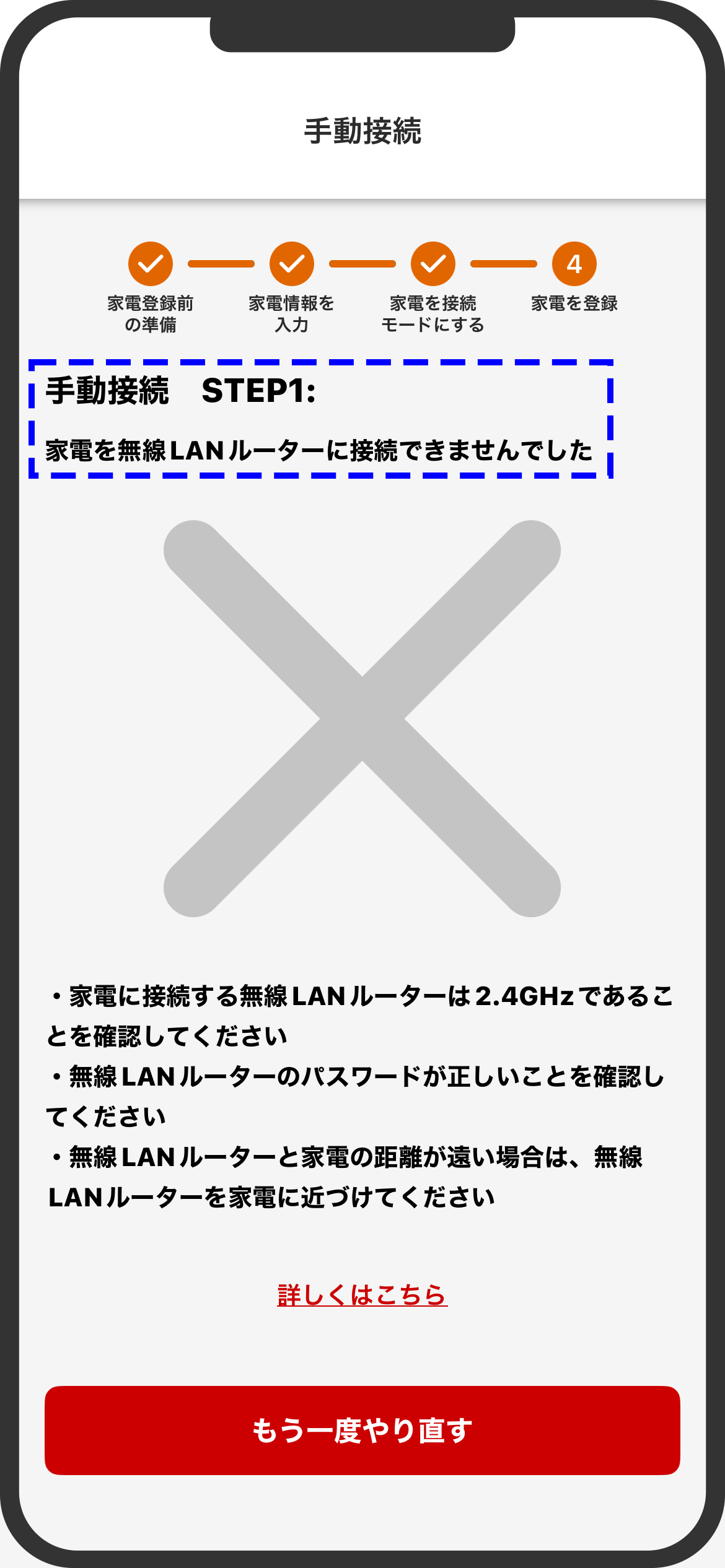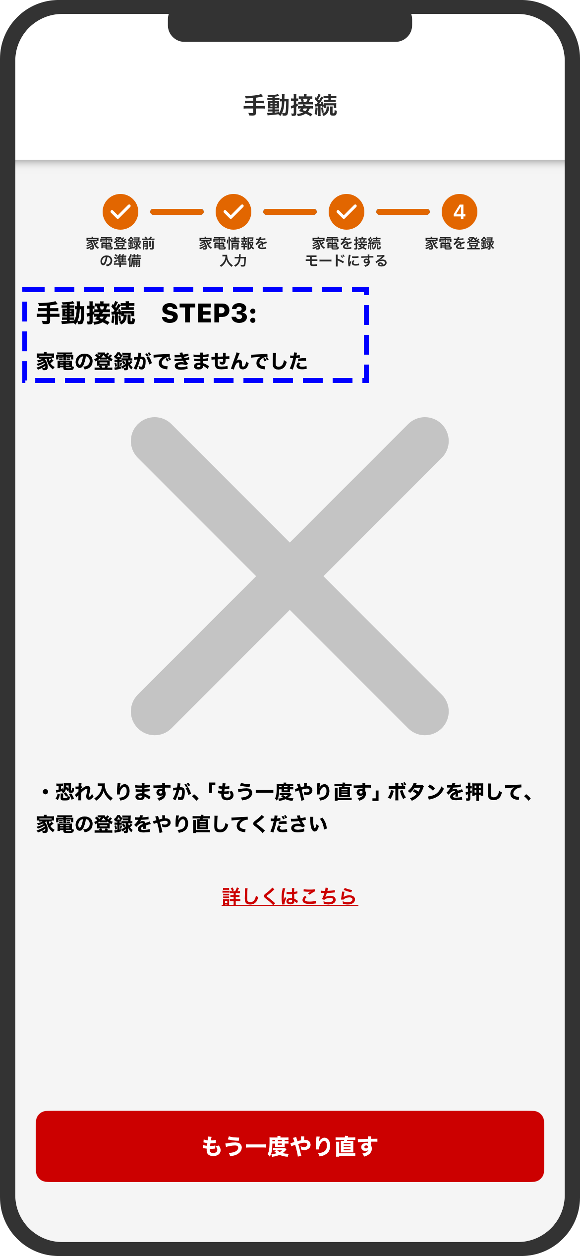 手動接続 STEP3:家電の登録ができませんでした の場合
