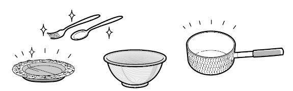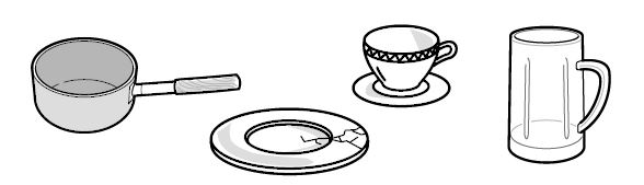 変形・傷や割れ、欠け・くもりやはがれ、発煙・発火・けがの原因となりますので、次のような食器は入れないでください。
