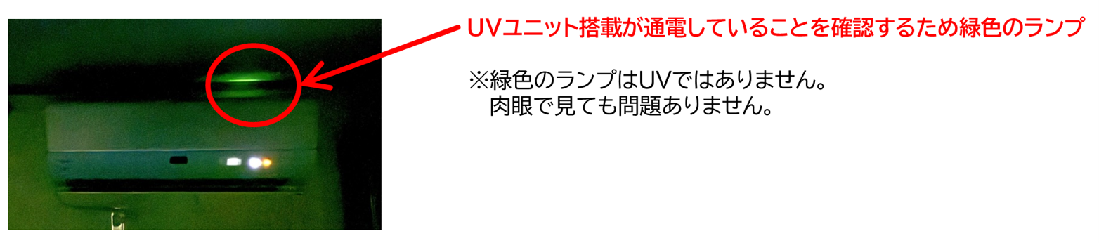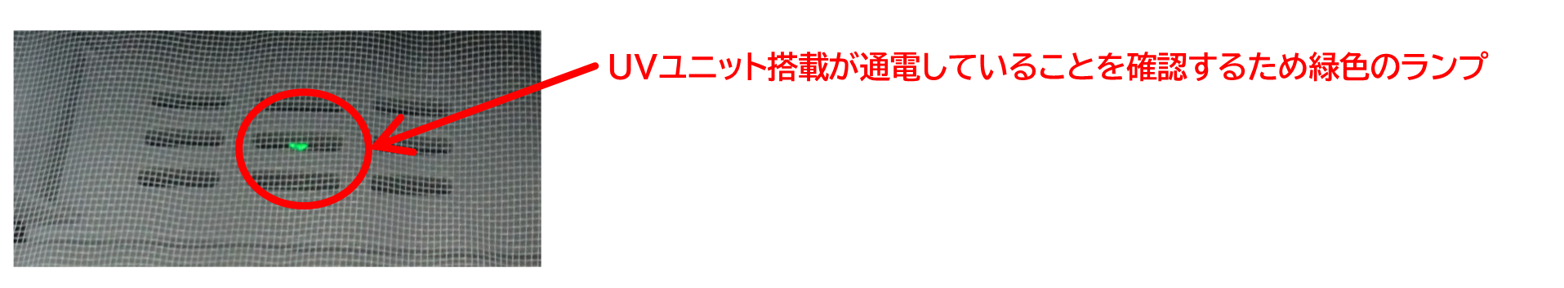 壁・天井の素材や設置環境によっては、UVユニット通電確認用の緑色のランプが見えることがありますが異常・故障ではありません。